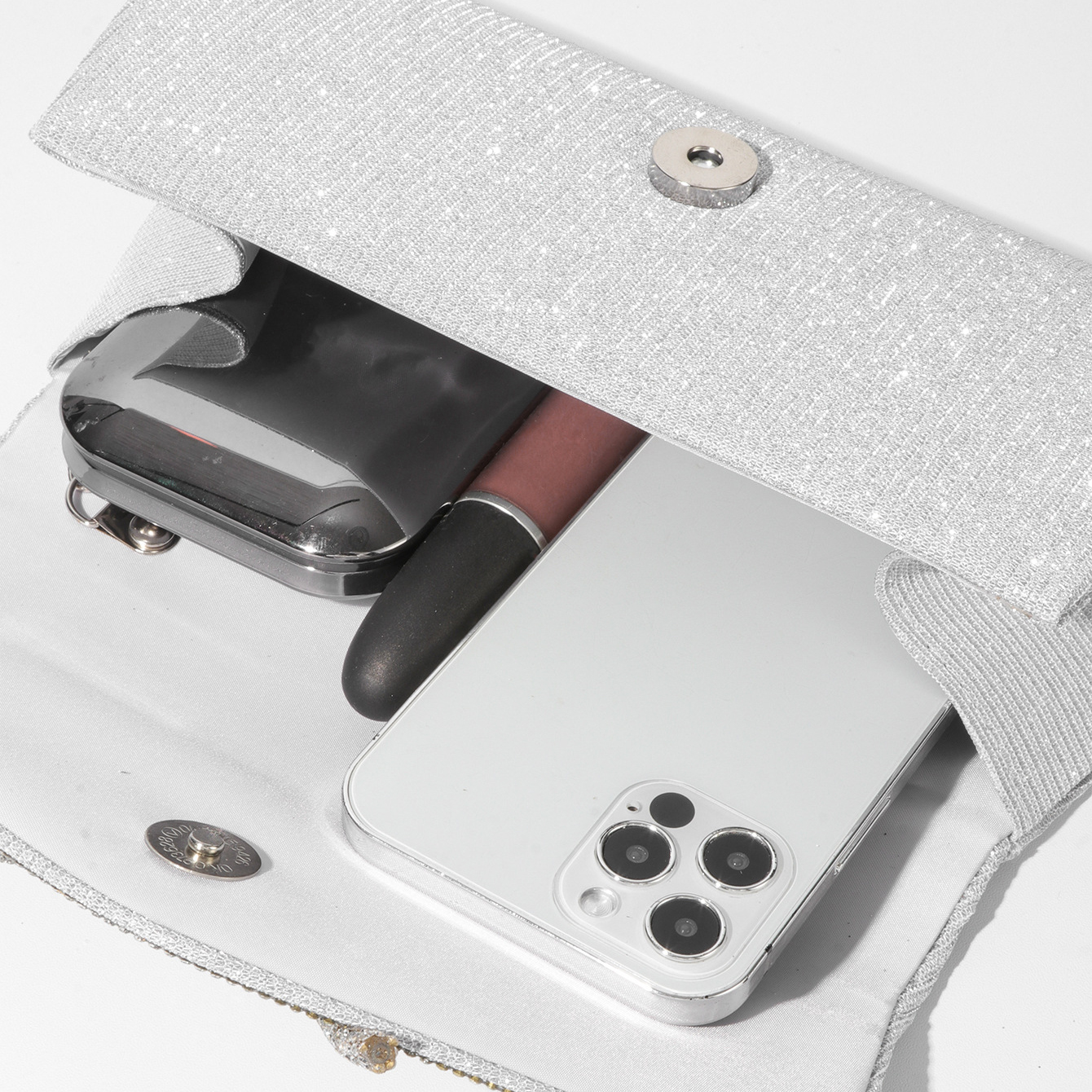 Glitter Clutch Purse: This shiny rhinestone clutch purse has enough room inside for your essentials,can easily fit a cell phone, lipstick and tissue, and it also lining with a slip pocket for your card