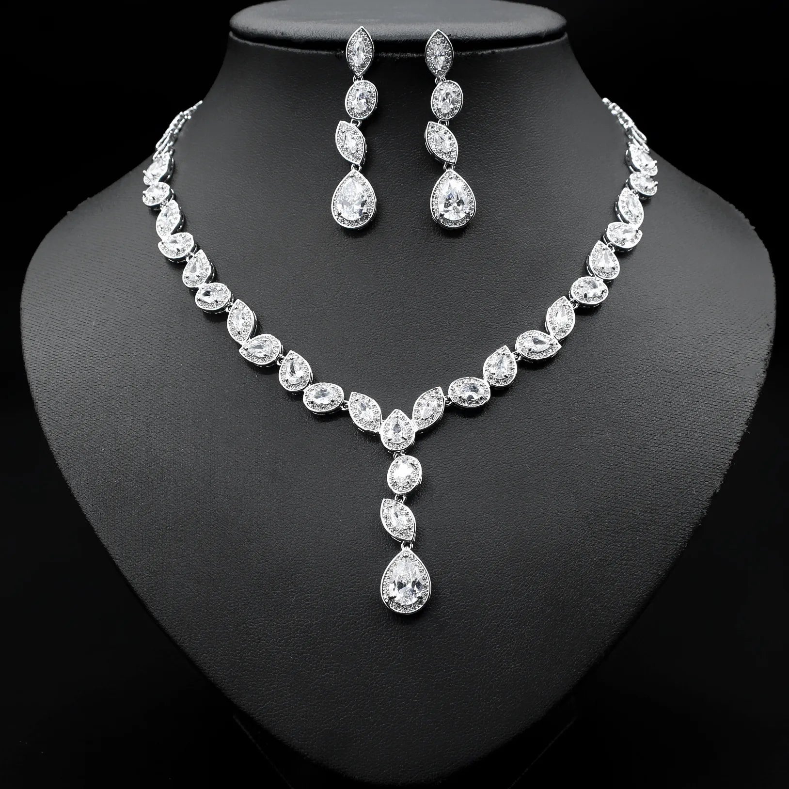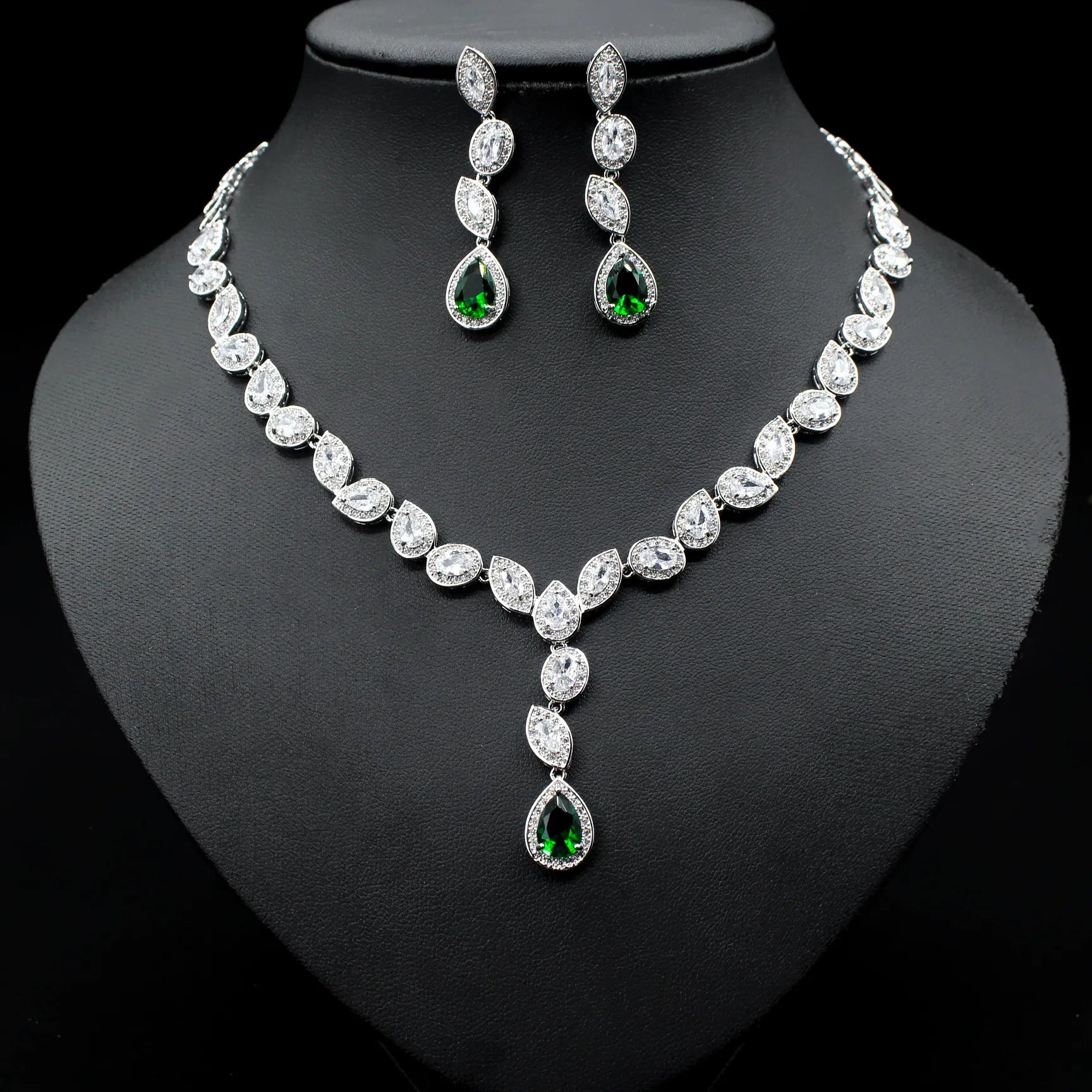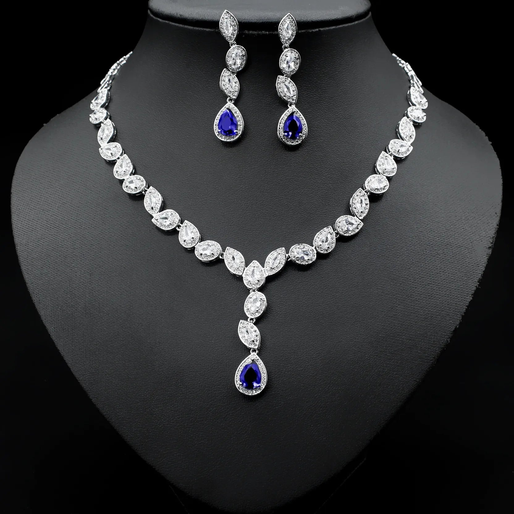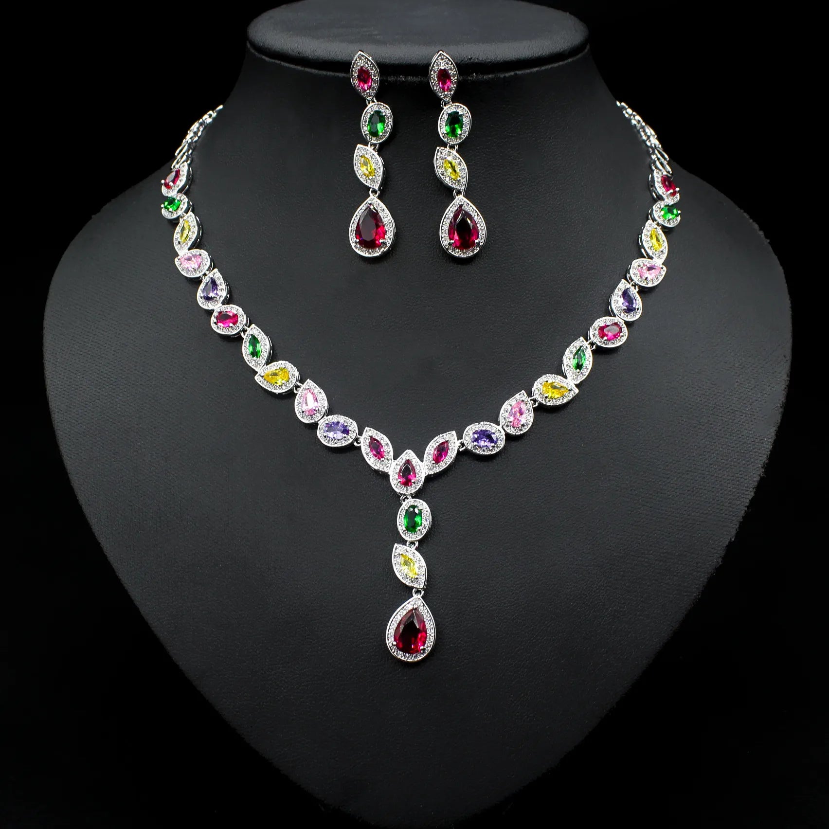 Colorful Zircon Necklace Earrings Clavicle Chain Female Noble Luxury Wedding Dress Three-piece Set