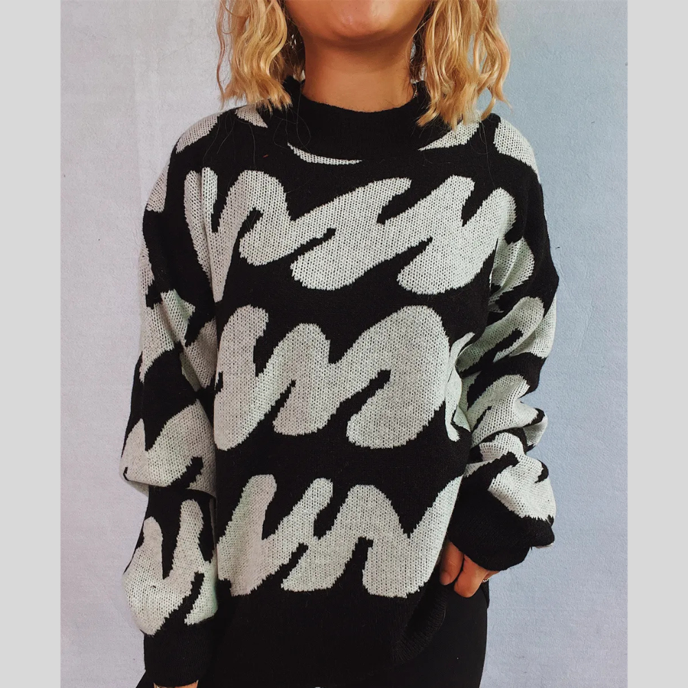 Contrast Trim Round Neck Long Sleeve Knit Sweater