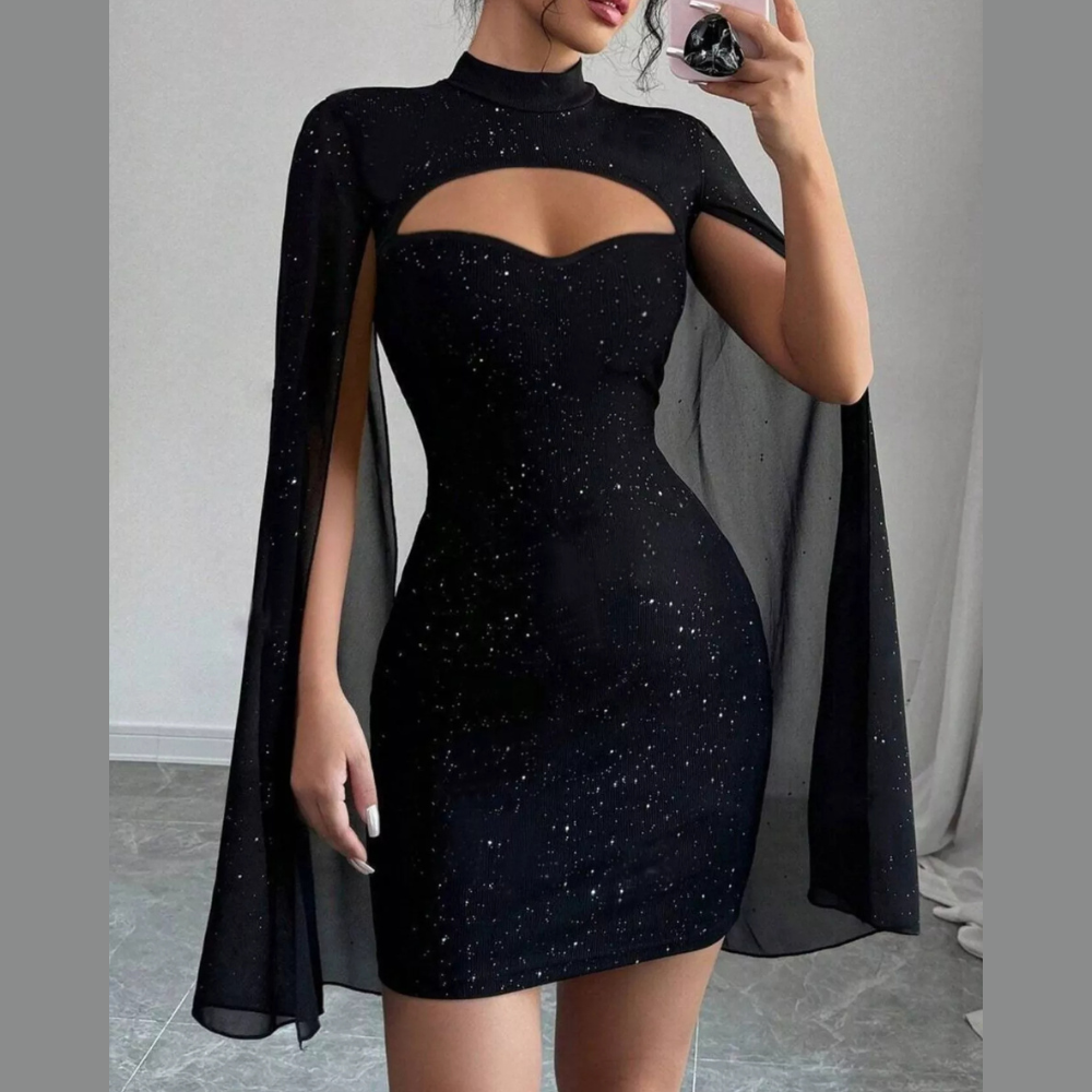 Cutout Bodycon Mini Dress with Cape Sleeves