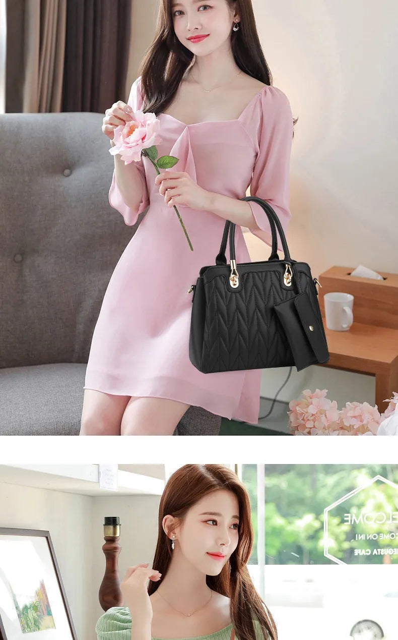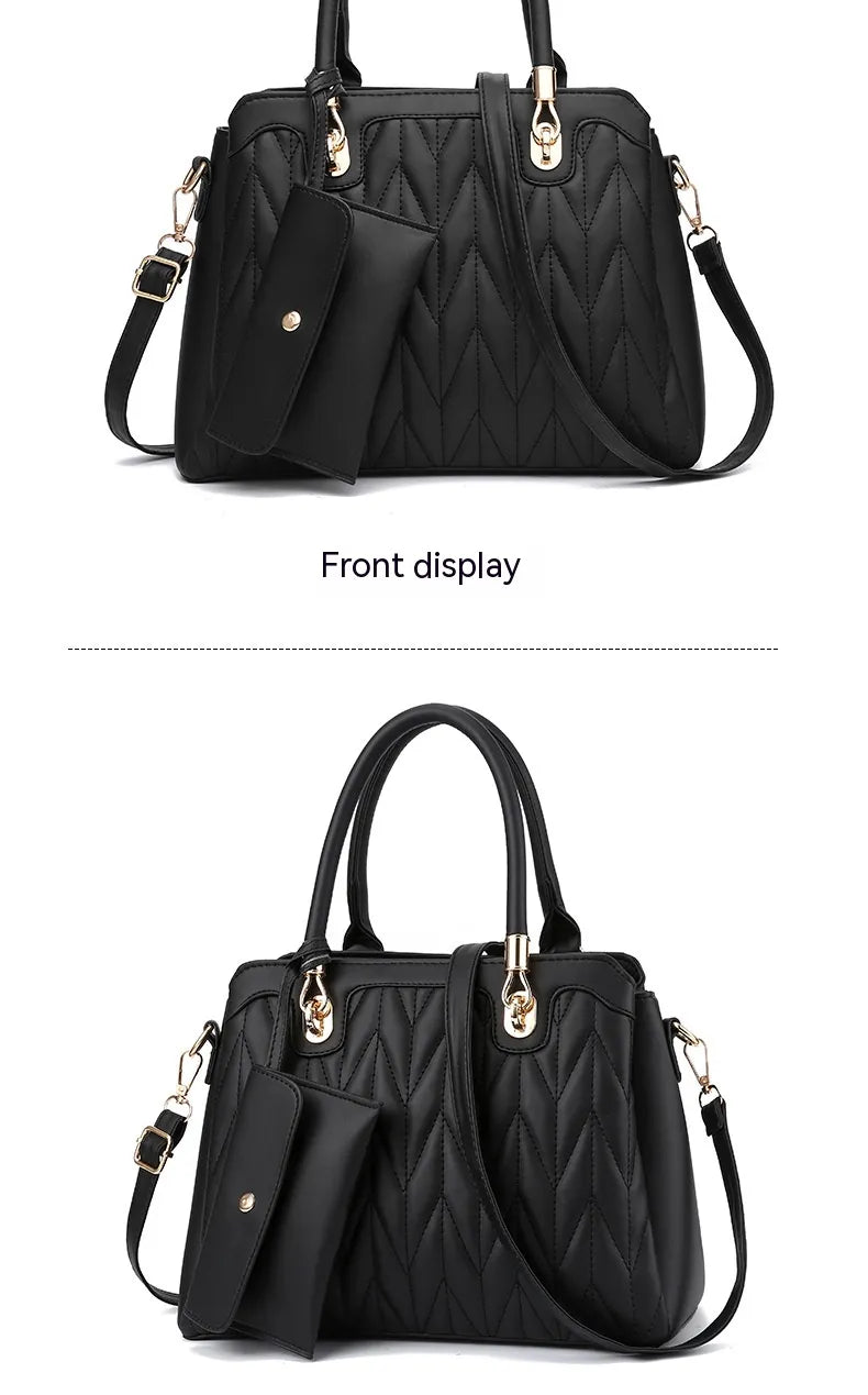 Embroidered Diamond Pattern Fashionable Handbag With Large Capacity