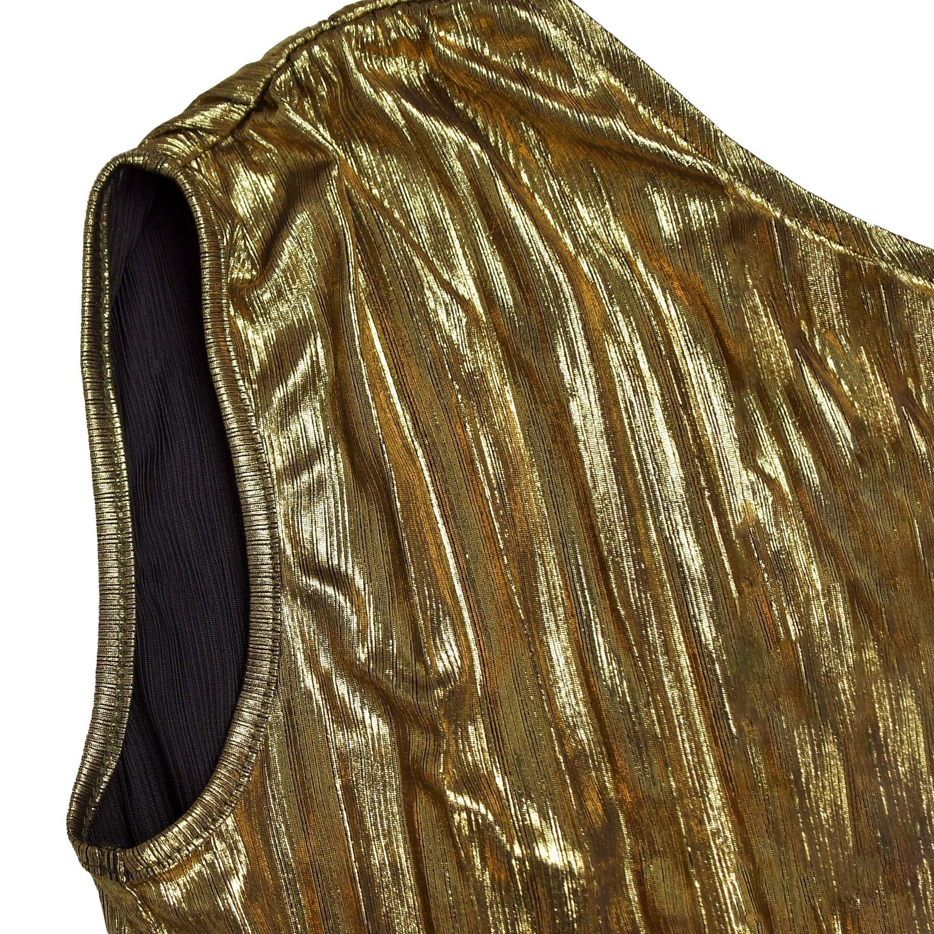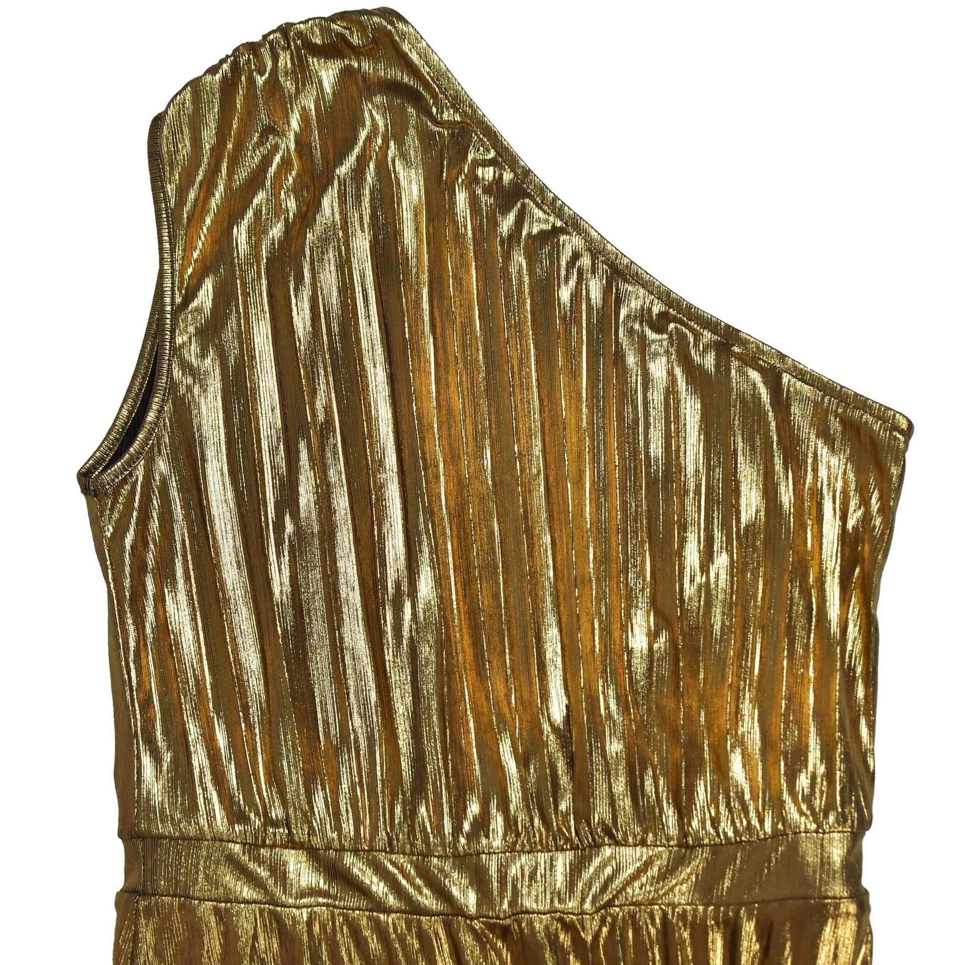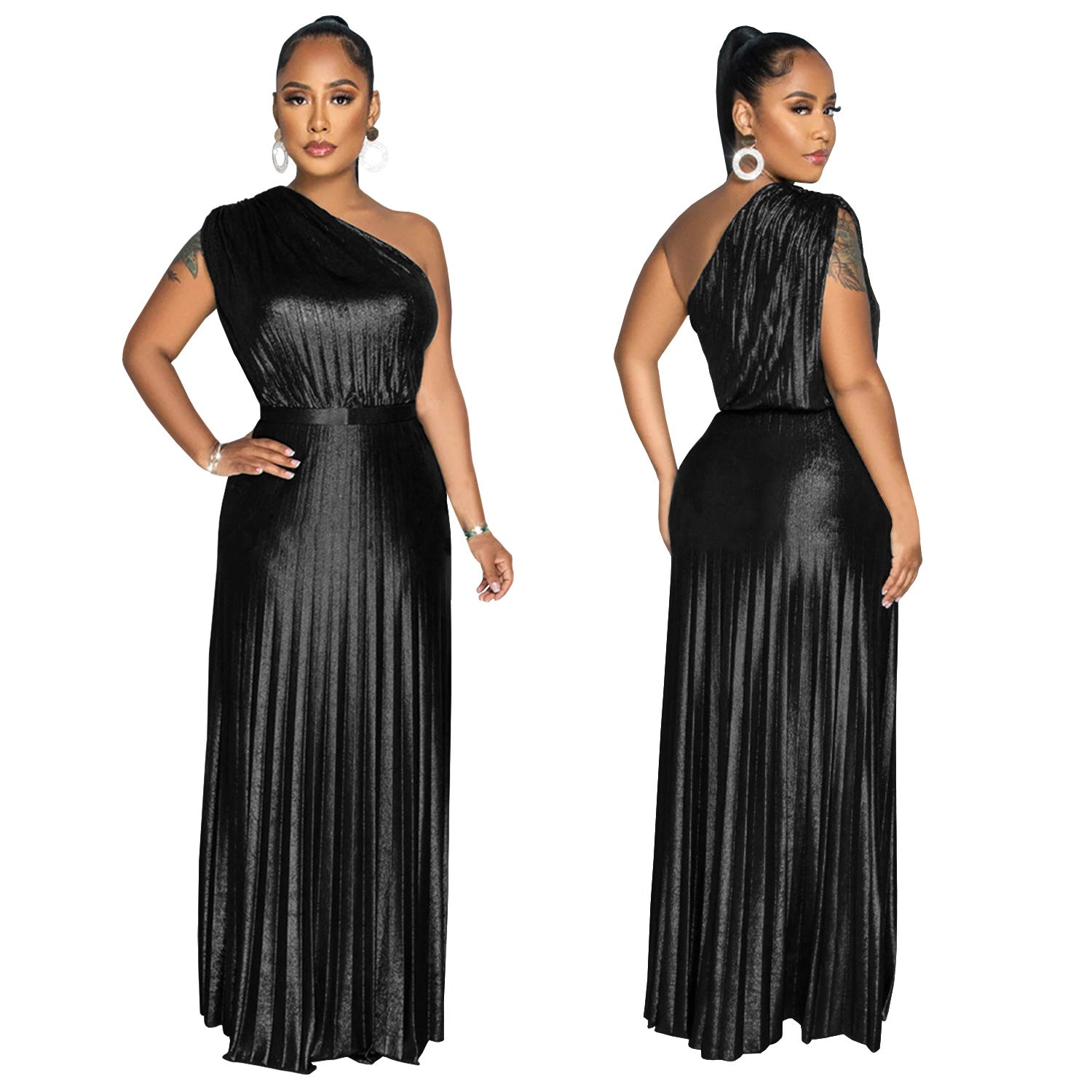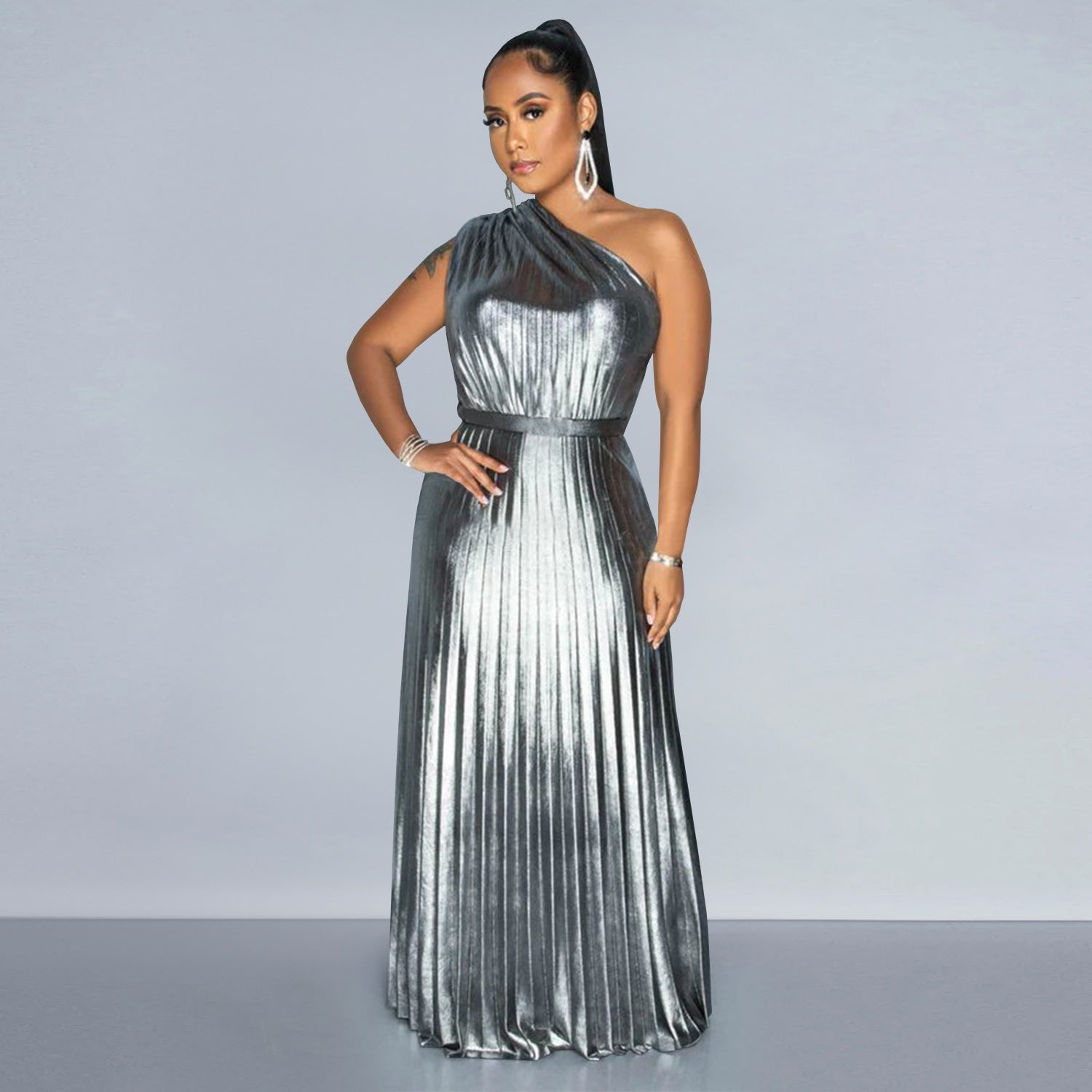 European And American Fashion Elegant Bronzing Oblique Shoulder Sleeveless Solid Color Dress