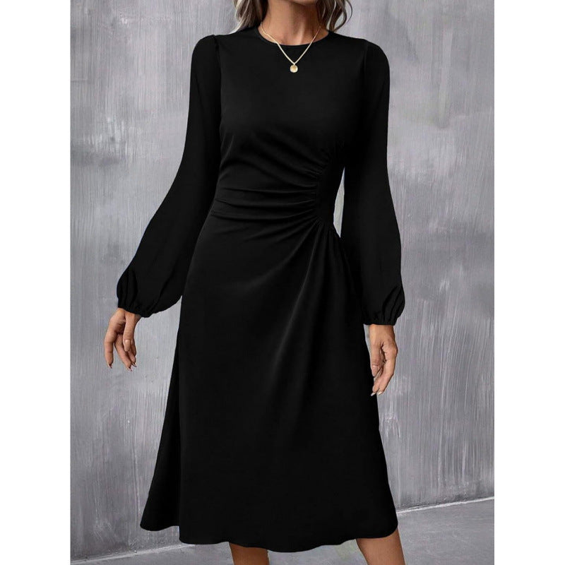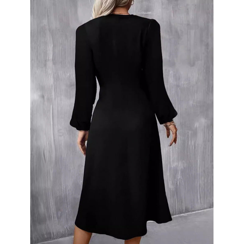 European And American Round Neck Pullover Fashion Long Sleeve Slim Fit Slit Dress