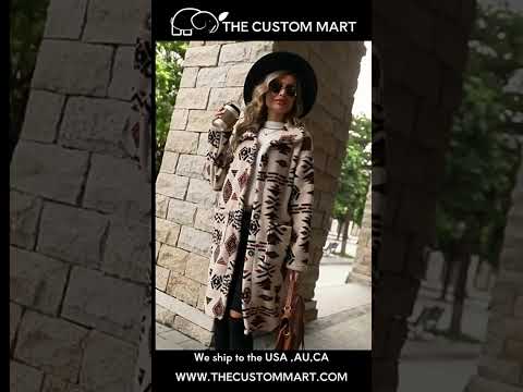 European And American Single-breasted Ethnic Print Plush Long Overcoat Outerwear