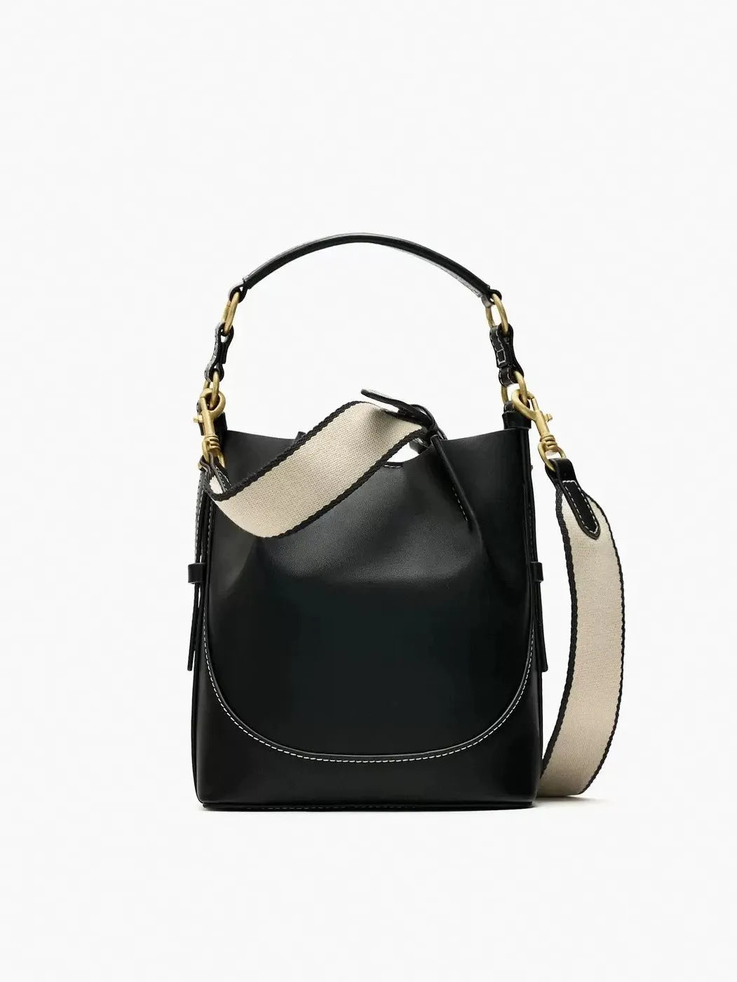 Fashion Drawstring Canvas Contrast Color Casual One-shoulder Bucket Bag