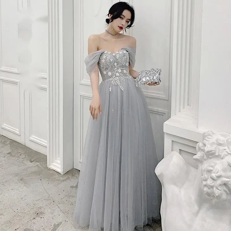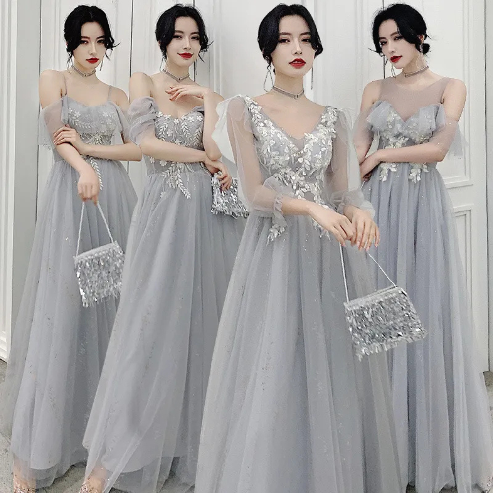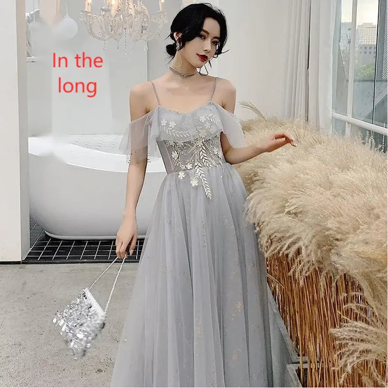 Color: Grey Long V-neck Half-sleeve Dress, Grey Long Half-sleeve Sling, Grey Long One-line Skirt, Grey Long Round neck Half-sleeve, Grey Medium Long V-neck Half-sleeve, Grey Medium Long Half-sleeve Sling, Grey Medium Long Shoulder Skirt, Grey Medium Long Rotator