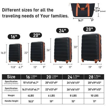 Hardshell Suitcase Set Of 4 Pieces, Lightweight 16 Inches, 20 Inches, 24 Inches, 28 Inches, Luggage Box- FREE USA SHIPPING