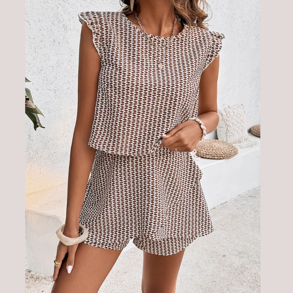 Honey Printed Round Neck Top and Layered Shorts Set