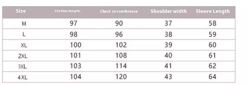 Dimensions: 4XL,3XL,2XL,M,L,XL