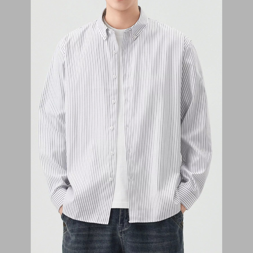 Men's Full Size Casual Striped Button-Down Shirt Plus Size