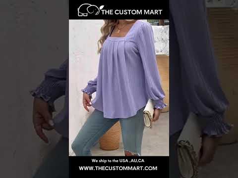 New Jacquard Pleated Square Neck T-shirt Fashion Solid Color Long Sleeve Pullover Tops Womens Clothing