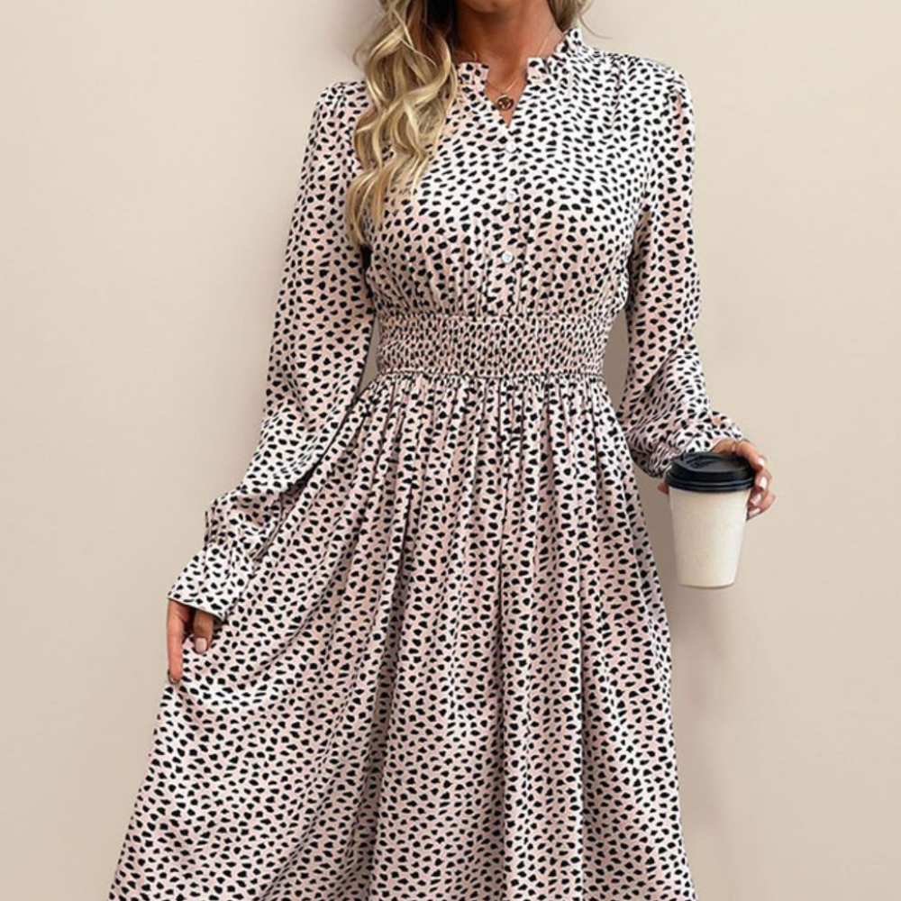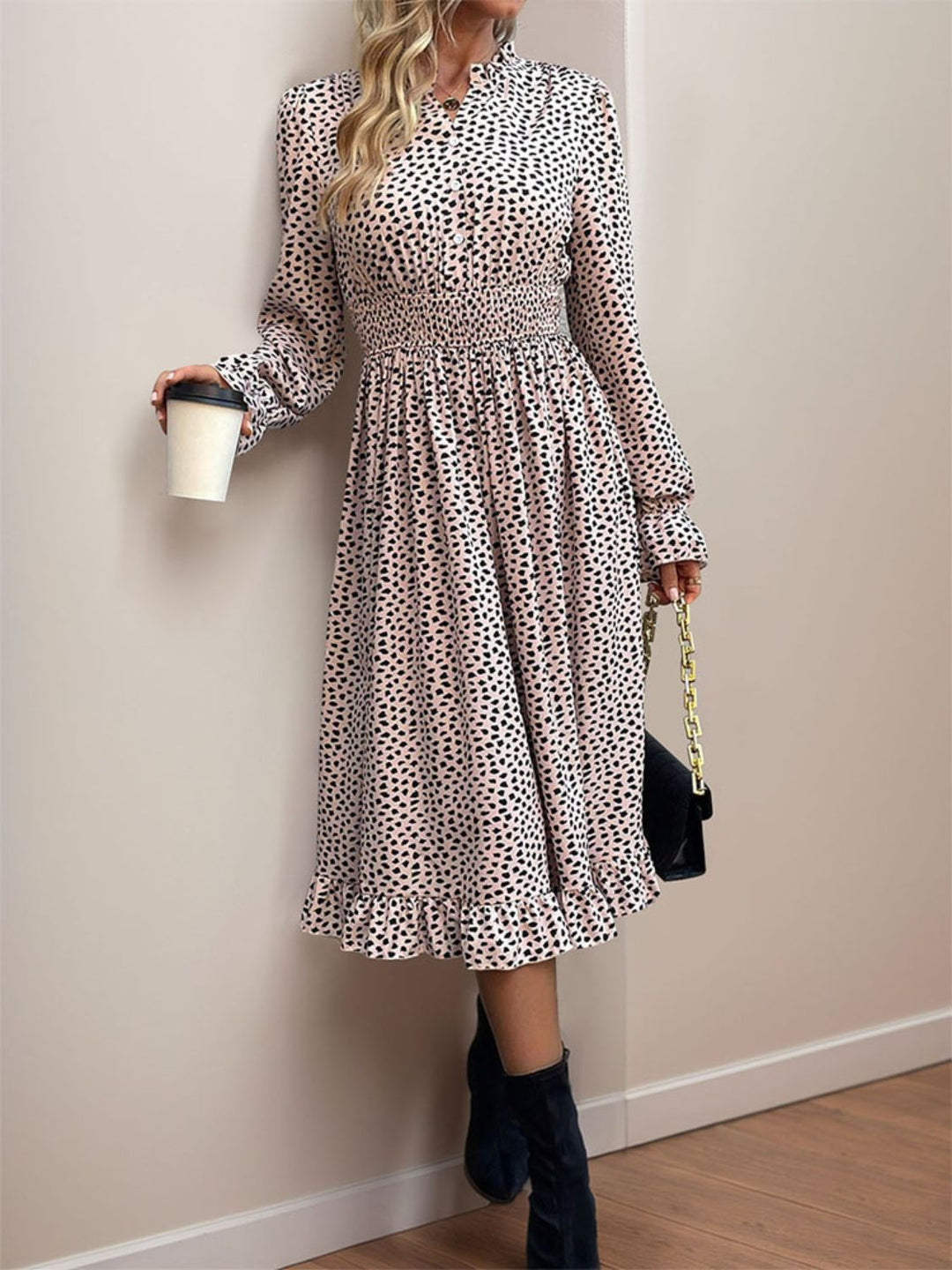 Perfee Ruched Ruffled Leopard Long Sleeve Dress