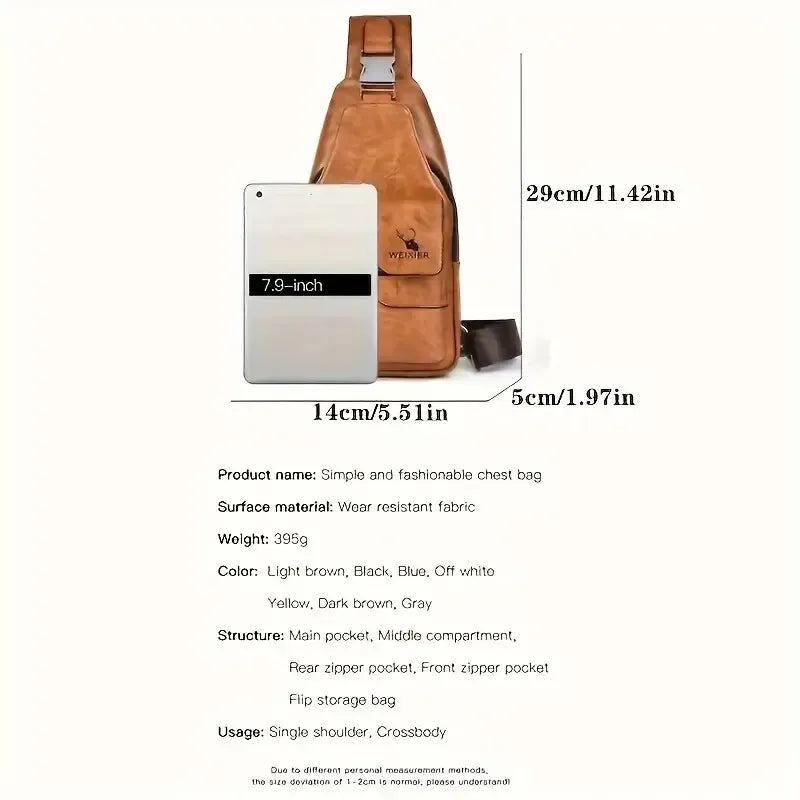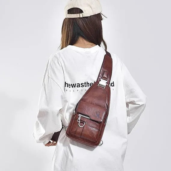 Premium PU Leather Vintage Chest Bag – Spacious Waterproof Crossbody with Multi-Compartment Design for Men-FREE USA SHIPPING