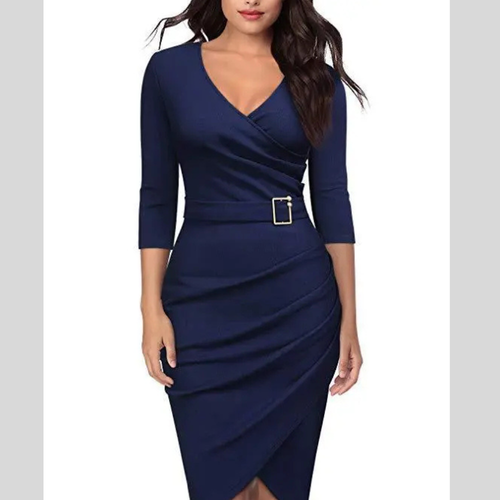 Spring And Summer New Amazon European And American Three-Quarter Sleeves V-Neck Office Dinner Party Dress Dress Women