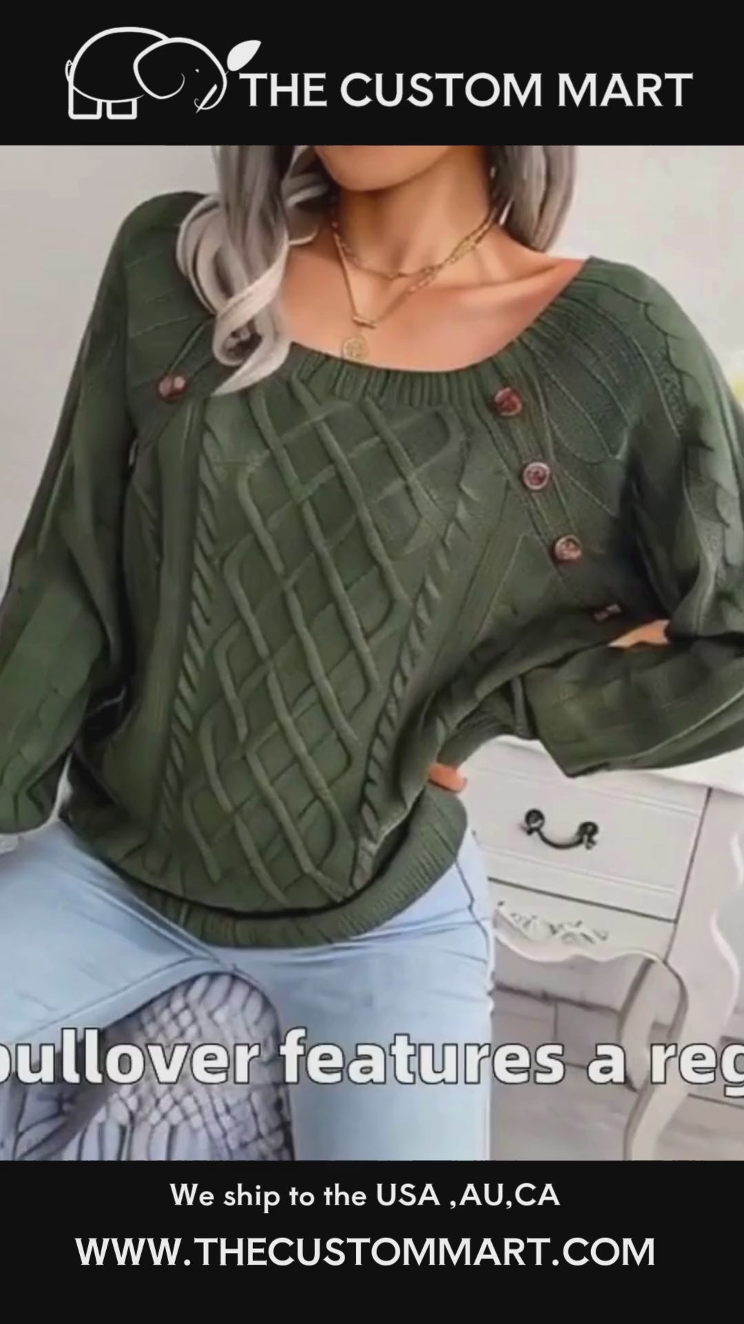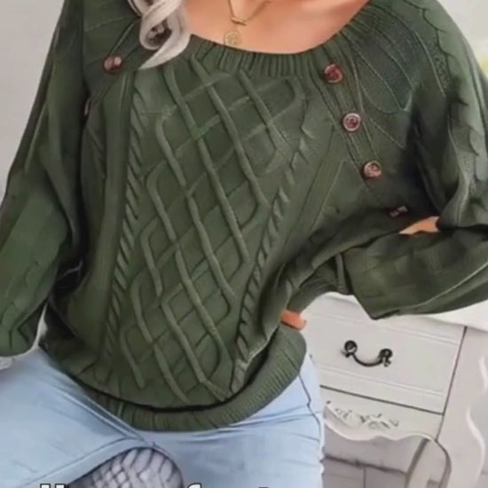 Square Neck Knitted Sweater With Button Design Winter Warm Long Sleeve Tops Women's Clothing