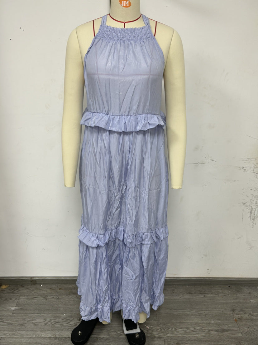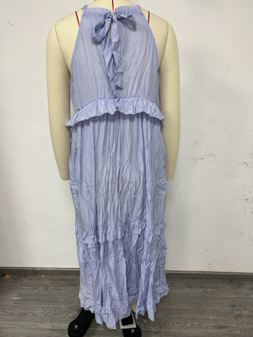 Summer Vacation Style Halter Neck Long Dresses Women Fashion Backless Leace-up Loose Ruffles Beach Dress Elegant Ladies Vestidos