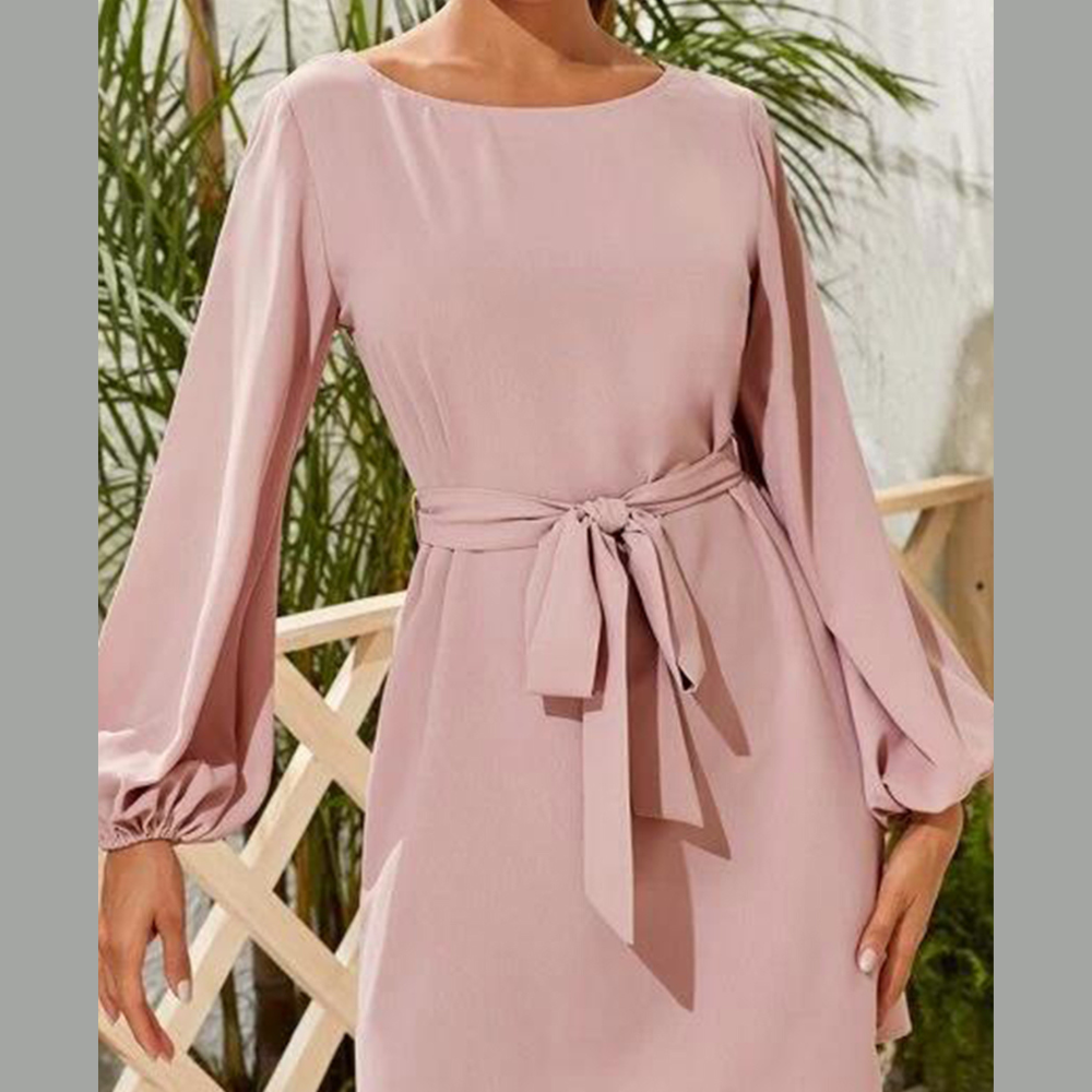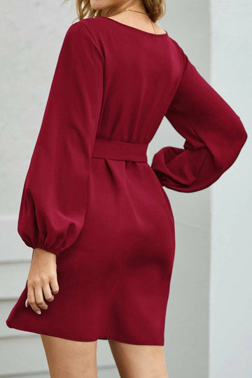 Tied Boat Neck Balloon Sleeve Mini Dress