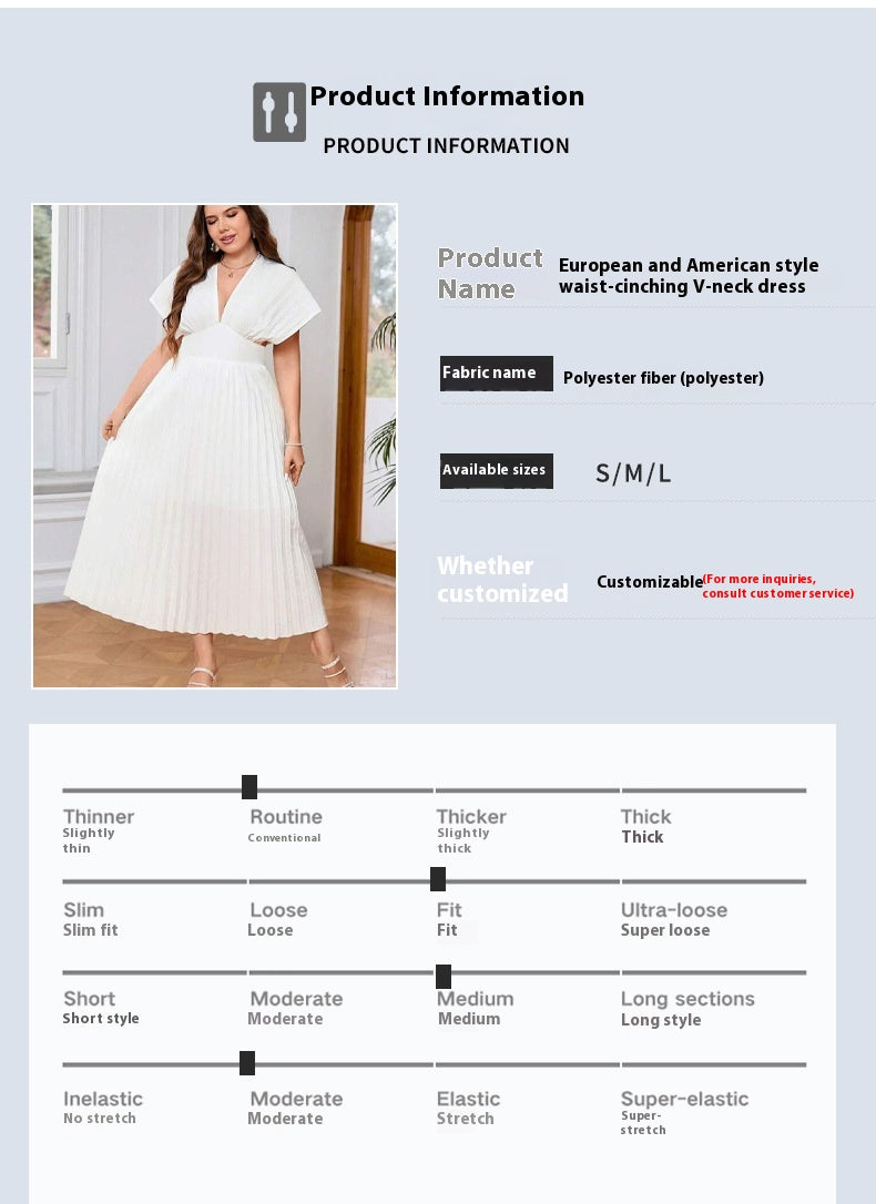V-neck Sexy Bat Sleeve Slim-fit Pleated A- Line Dress