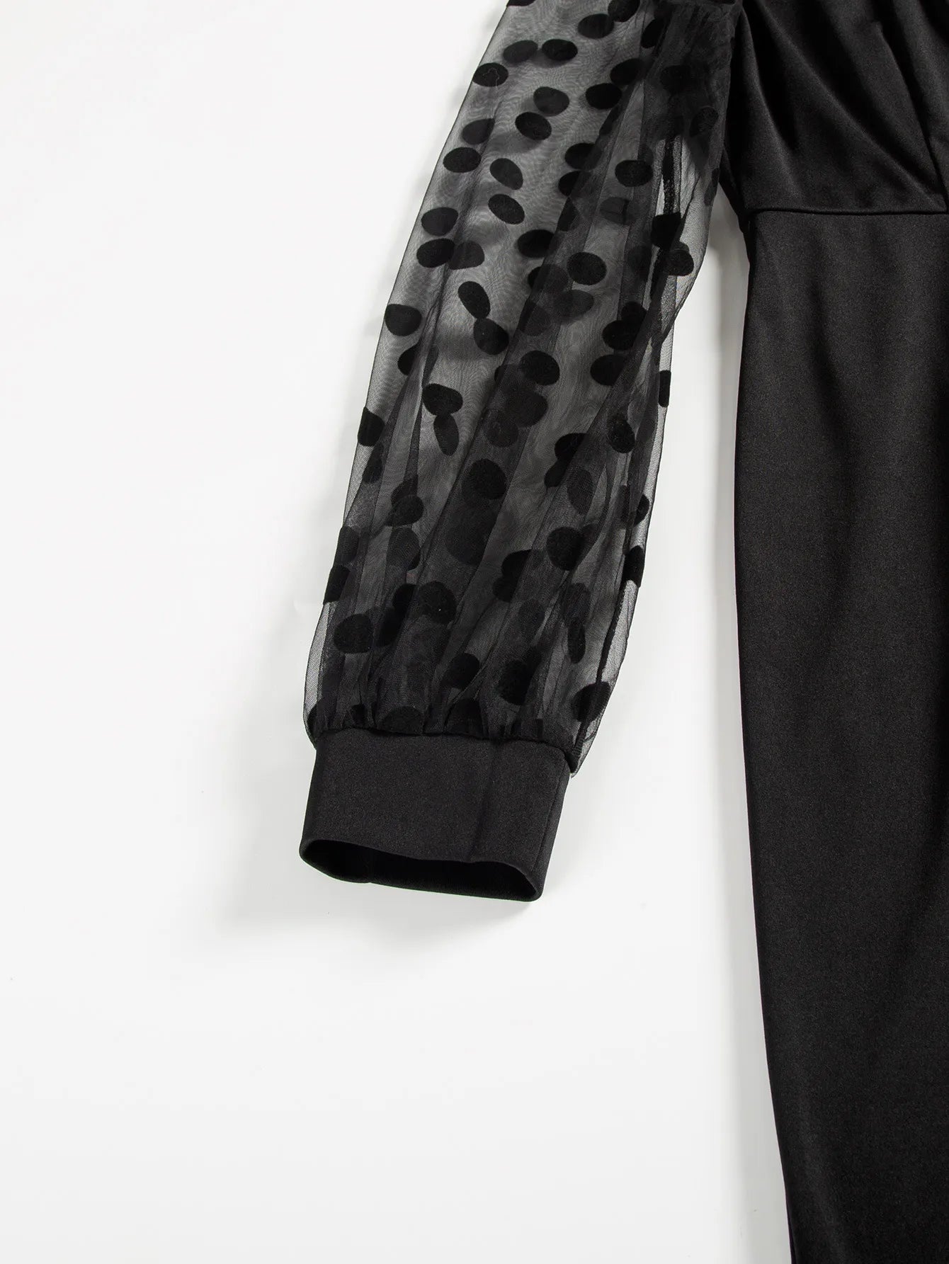 Women's Clothing Dot Mesh Patchwork Waist-slimming Sheath Long Sleeve Dress