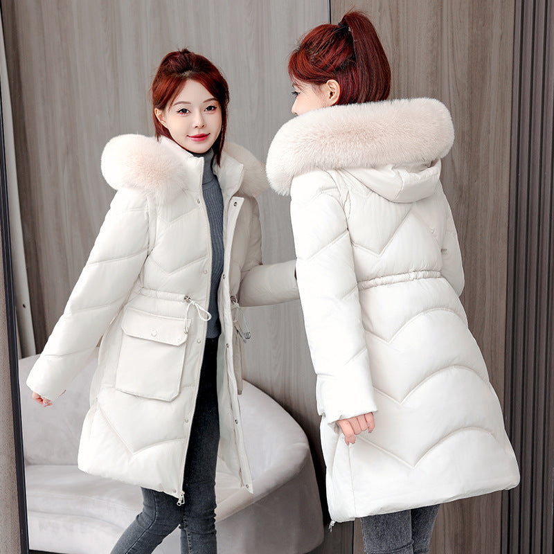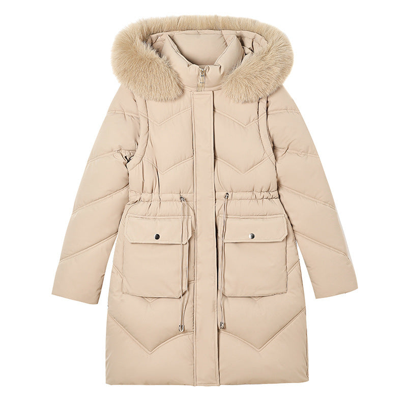 Women's Mid-length Big Fur Collar Hooded Cotton Vest Cotton-padded Jacket