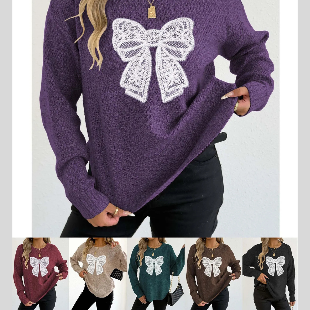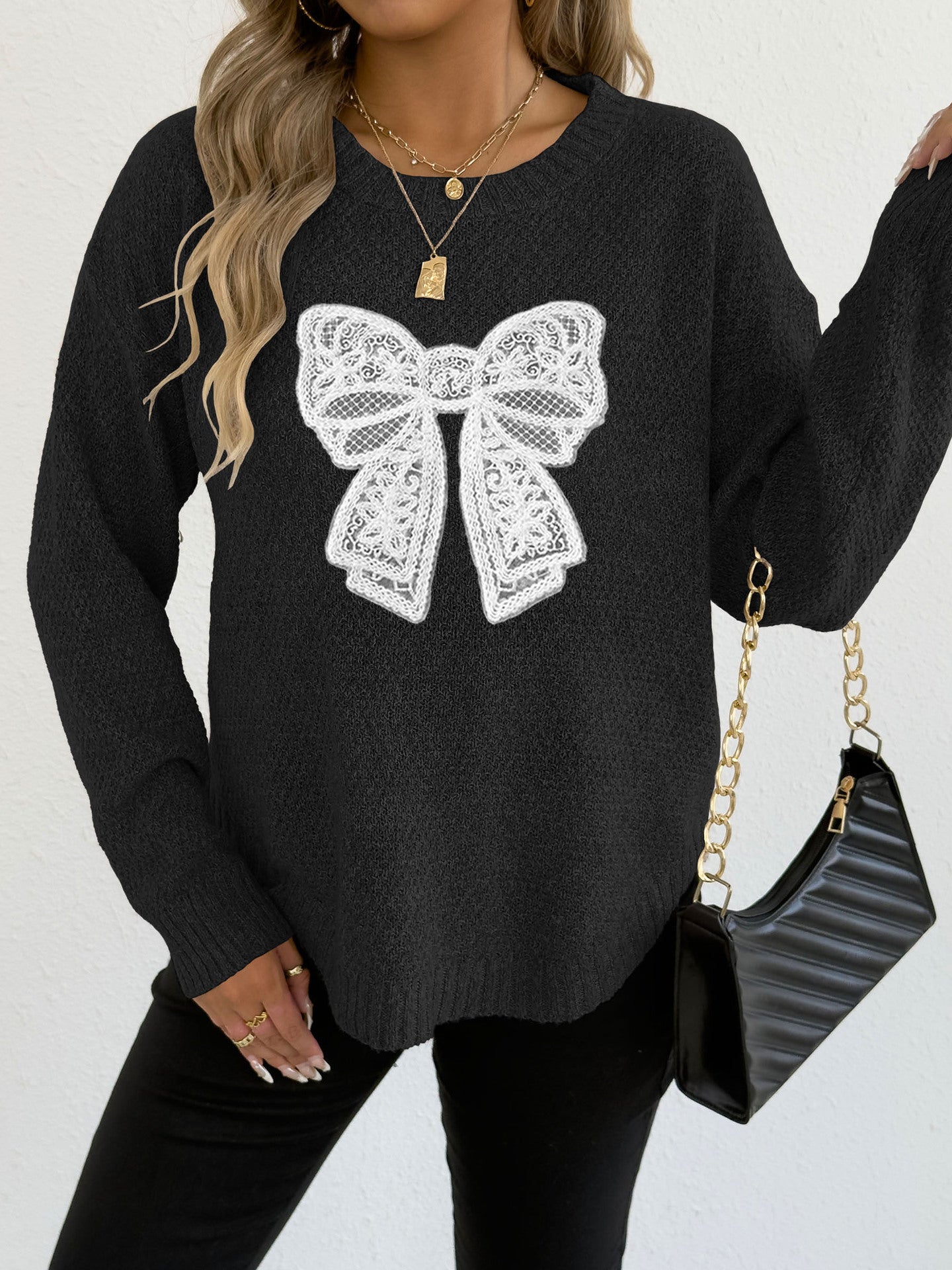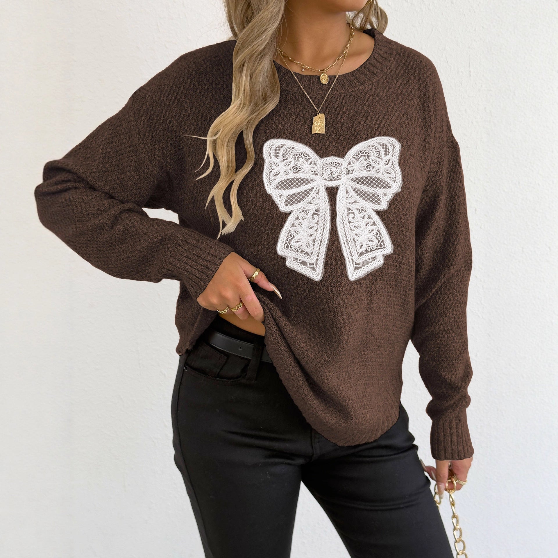 Women's Round Neck Embroidered Lace Butterfly Stitching Woven Sweater